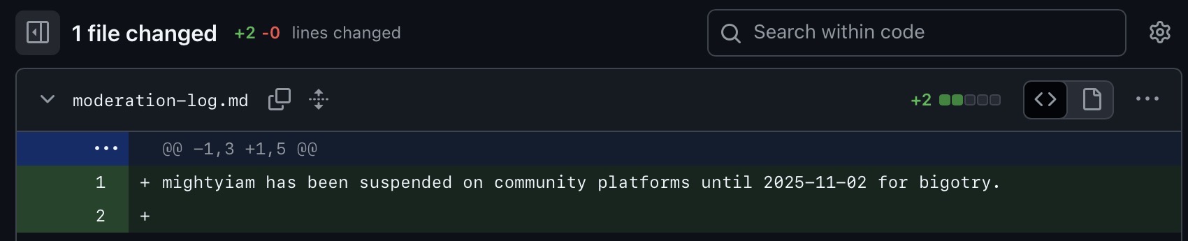 Third: the moderation team has a long established history of expressing a very clear political tendency — one which some subset of their users is undoubtedly very happy about, but also one which would naturally tend to exclude a lot of reasonable, well-meaning people and make them feel unwelcome. For reference, this is the same project where the founder was forced out largely over disagreement with that political tendency.